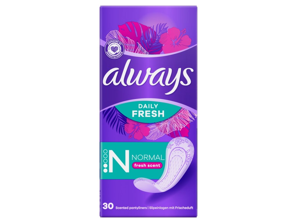 Zostaňte celý deň svieži s intímkami Always Fresh & Protect Normal. Vďaka pohodlnému dizajnu ponúkajú skvelú kombináciu komfortu a ochrany, takže sa na ne môžete spoľahnúť každý deň bez toho, aby ste ich zacítili. Ideálne pre vaginálny výtok alebo väčšiu ochranu pri nepravidelnej menštruácii.