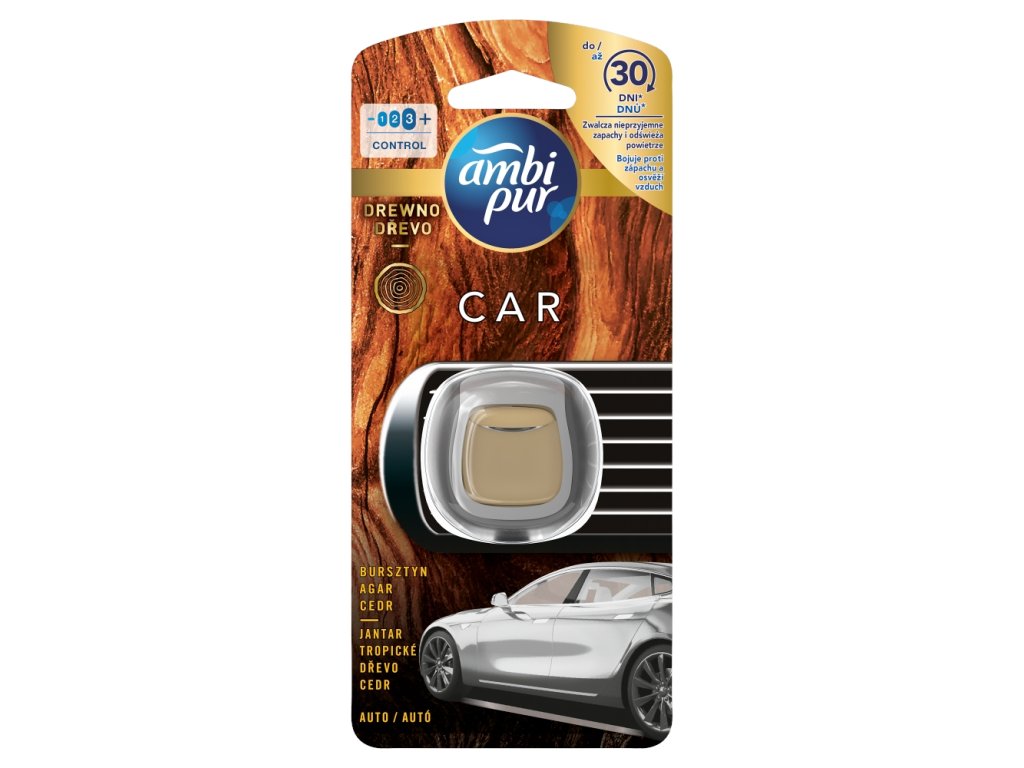 Ambi Pur osviežovač vzduchu do auta Origins Wood s jedinečnou technológiou OdourClear nepretržite eliminuje nepríjemné pachy v aute ako pach z potravín, domácich zvierat, dymu alebo odpadkov a zanecháva vzduch príjemne svieži. Má vôňu túžbu, jantáru a cédra, ktorá vytvorí vo vašom aute atmosféru remeselnej zručnosti a prírody. Pomocou kolieska na boku môžete dokonca nastaviť intenzitu vône. Osviežovač vzduchu sa ľahko používa, pracuje bez batérie alebo elektriny a vydrží až 30 dní. Osviežovač vzduchu do auta od značky Ambi Pur sa jednoducho pripevní ku klimatizácii vozidla a vďaka svojmu diskrétnemu a štýlovému dizajnu dokonale splynie s interiérom vozidla.