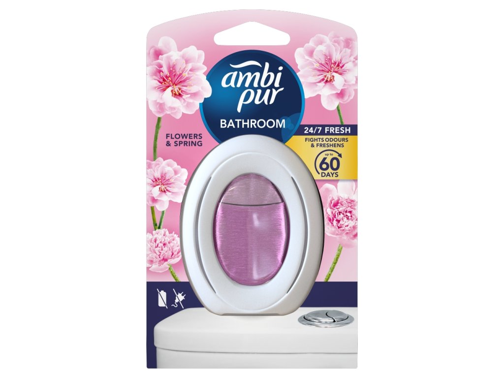 Zásadné funkcie osviežovača vzduchu AMBI PUR Bathroom Flowers and Spring 7,5 ml