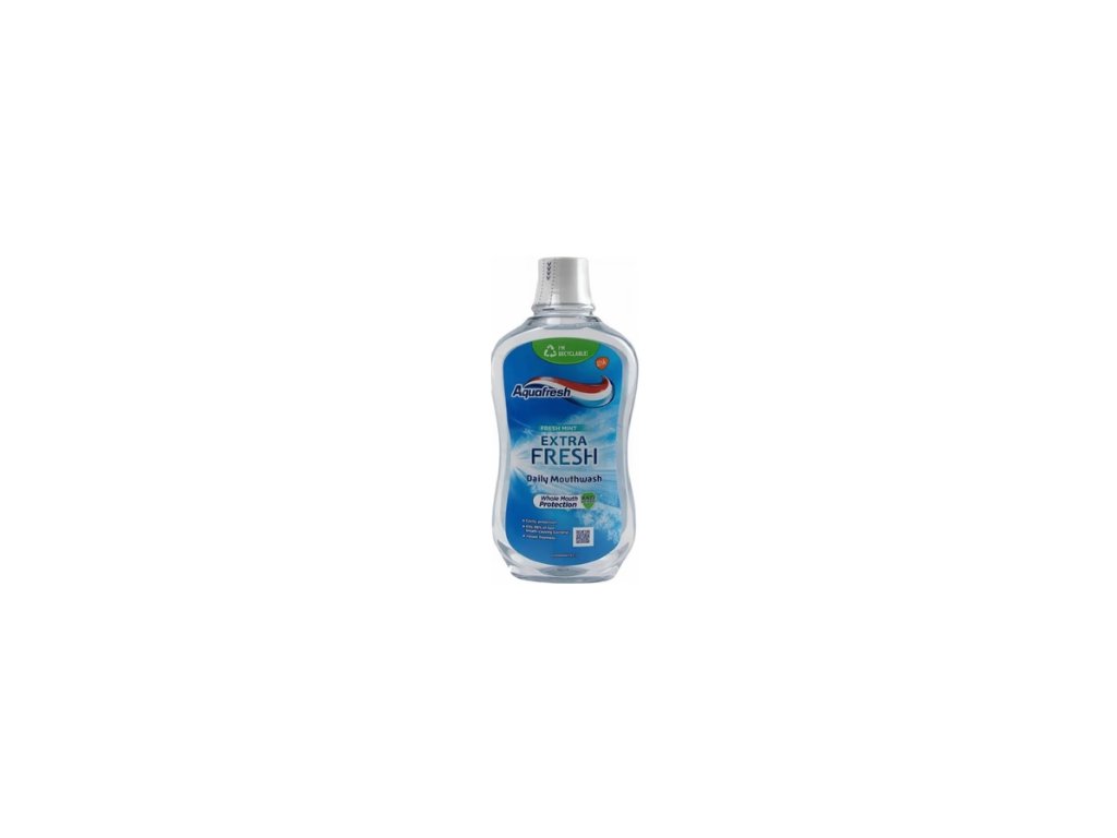 Aquafresh Fresh Mint ústna voda zanecháva príjemne svieži pocit v ústach.
