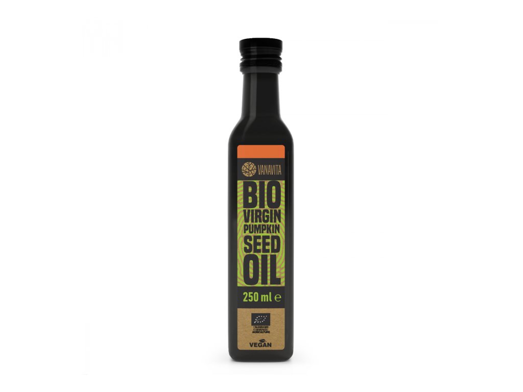 BIO Tekvicový olej - 100% panenský olej lisovaný za studena, ktorý je vhodný na prípravu šalátov, dresingov, nátierok a mnohých ďalších pokrmov
