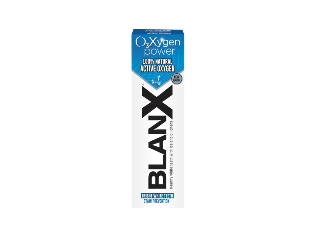 Šetrná k zubnej sklovine Zubná pasta BlanX O3X Oxygen Power je určená na šetrné bielenie zubov. Účinne odstraňuje nežiaduce pigmentáciu zo zubov a pri jej pravidelnom používaní vás odmení žiarivejším úsmevom. Účinne a šetrne bieli vaše zuby. Bojuje sa zubným kazom a plakom. Pasta má nízku abrazivitu. Šetrná k zubnej sklovine. Zanechá svieži dych po dlhú dobu. Ako používať: Používajte najmenej 2× denne. Čistite zuby dôkladne aspoň po dobu 2 minút. Na dočistenie zubov použite zubnú niť alebo medzizubnú kefku.Dodatočné parametre