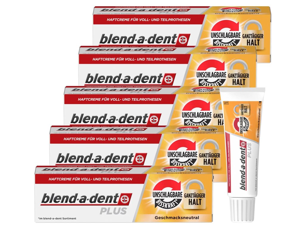 Blend-a-dent Original Complete je fixačný krém bez príchuti, ktorý zvyšuje stabilitu zubnej náhrady a posilňuje silu zhryzu až o 63%. Krém zabraňuje prenikaniu zvyškov jedla pod zubnú náhradu. Náhradu upevní a zároveň pod ňou vytvára mäkký podklad, ktorý chráni ďasná pred mechanickým trením spôsobeným náhradou.