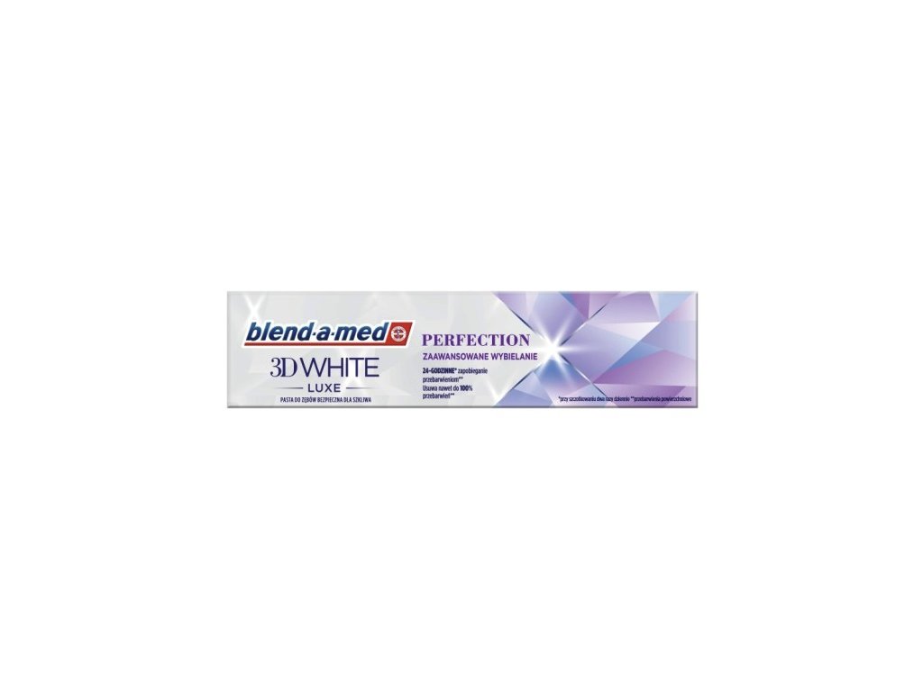 Zubná pasta Blend-a-med 3D White Luxe Perfection v objeme 75 ml je prémiovo vyvinutá bieliacou ZP pre každodennú domácu starostlivosť o žiarivý úsmev. Pri čistení zubov dvakrát denne ponúka intenzívny účinok: hĺbkovo prenikajúca pena aktívne odstraňuje až 100% povrchových škvŕn aj na ťažko dostupných miestach a súčasne zaisťuje ochranu pred vznikom nových pigmentácií až po dobu 24 hodín.