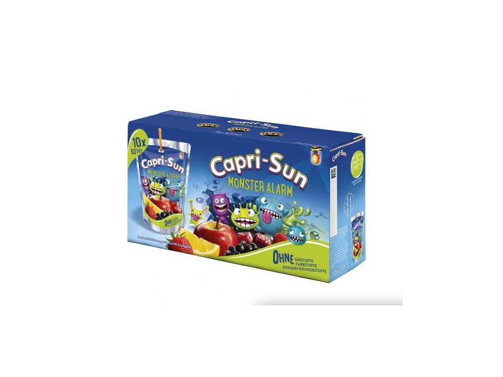 Čo radi pijú malé príšerky? Samozrejme vlastný vlastný ovocný mix s chuťou jabĺk, čiernych ríbezlí, višní, jahôd a limetky. S Capri-Sun Monster Alarmom - smäd a nuda nemajú šancu!
