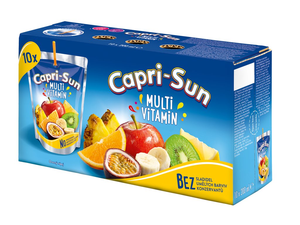 Capri-Sun ovocný nápoj s príchuťou multivitamínu. V balení nájdete 10 pitíček s objemom 200 ml.
