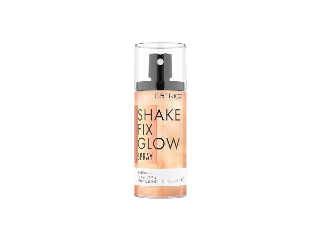 Hydratačný fixačný sprej Pretrepte, upravte, rozjasnite! Hydratačný fixačný sprej s výťažkami z kvetu kaktusu a ananásu predlžuje odolnosť make-upu, osviežuje, stará sa o pleť a rozjasňuje vďaka drobným trblietavým čiastočkám. Najskôr pretrepte fľaštičku a nastriekajte sprej rovnomerne na tvár. Zloženie spreja je vegánske a neobsahuje žiadne mikroplasty.Dodatočné parametre