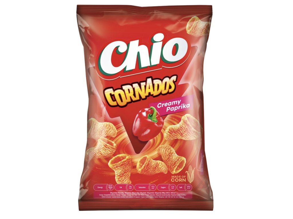 Obľúbené Chio Cornados sú nadýchané kukuričné snacky v tvare špirál, ktoré zaujmú perfektnou chrumkavosťou a vyváženou sladko-slanou paprikovou chuťou . Vďaka jemnej štruktúre sa rozplývajú na jazyku a lákajú k ďalšiemu súste. Praktické balenie 65 g je ideálne „to-go“ – do batohu, do kancelárie aj na večerné sledovanie seriálov.
