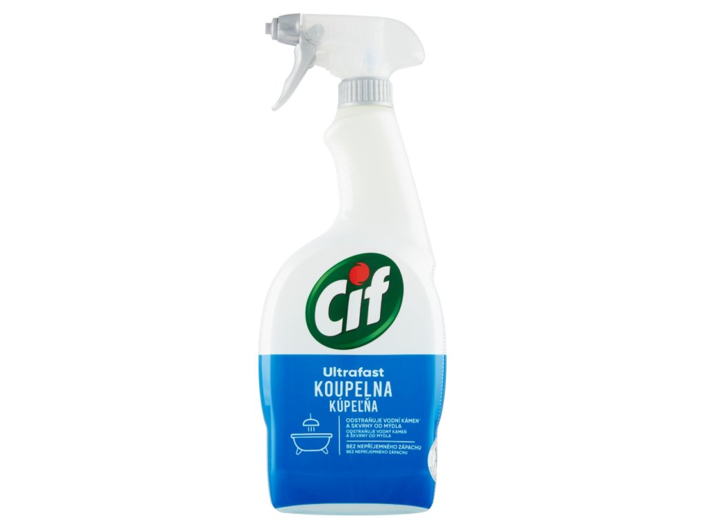 Čistiaci sprej Cif Kúpeľňa UltraFast rýchlo odstraňuje bežné nečistoty v kúpeľni a pritom zanecháva povrchy žiarivé.