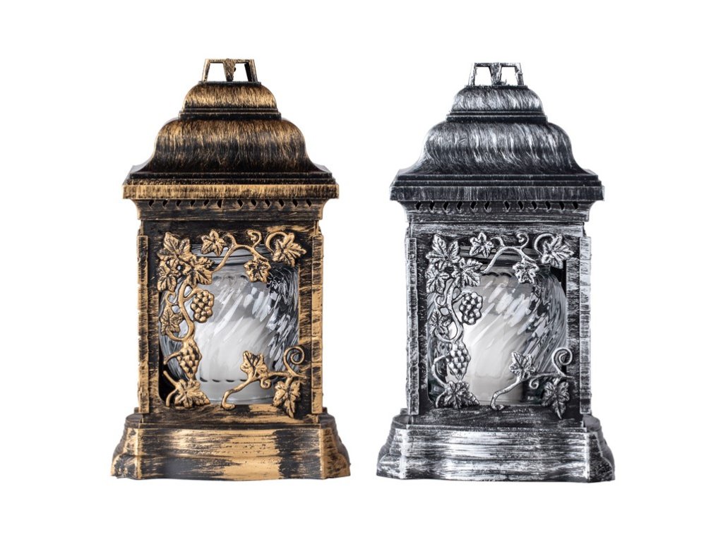 Táto lampáš s vkladom poskytuje 32 hodín horenia a je ideálny pre použitie na cintoríne. Jej rozmery sú 26 cm.Dodatočné parametre