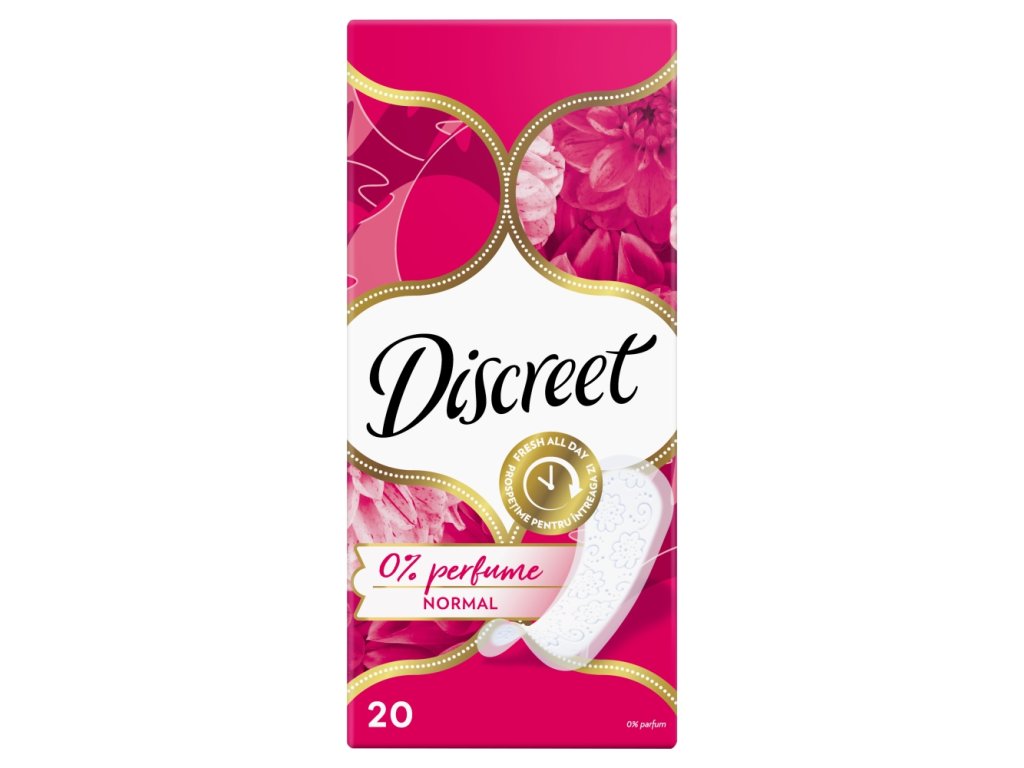 Discreet Normal sú tenké diskrétne intímky s jemnou parfumáciou a priedušným povrchom na každodenné použitie. Sú vhodné na dni s miernou menštruáciou alebo len pre vyšší pocit čistoty. Prispôsobujú sa každému tvaru nohavičiek.