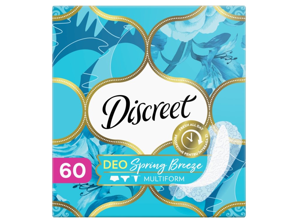 Intímky Discreet Multiform Spring Breeze vám dodajú pocit ľahkosti a sviežosti. Budete sa s nimi môcť cítiť svieža a krásna bez ohľadu na váš štýl. Tieto intímky umožňujú pokožke v intímnych partiách prirodzene dýchať a zaisťujú tak až 12 hodín sviežosti a pohodlia. Sú také tenké, že ich ani nepocítite. Navyše sa vďaka svojmu flexibilnému prevedeniu prispôsobí každému strihu spodných nohavičiek. Nech už vám deň prinesie čokoľvek, prispôsobí sa vášmu pohybu.