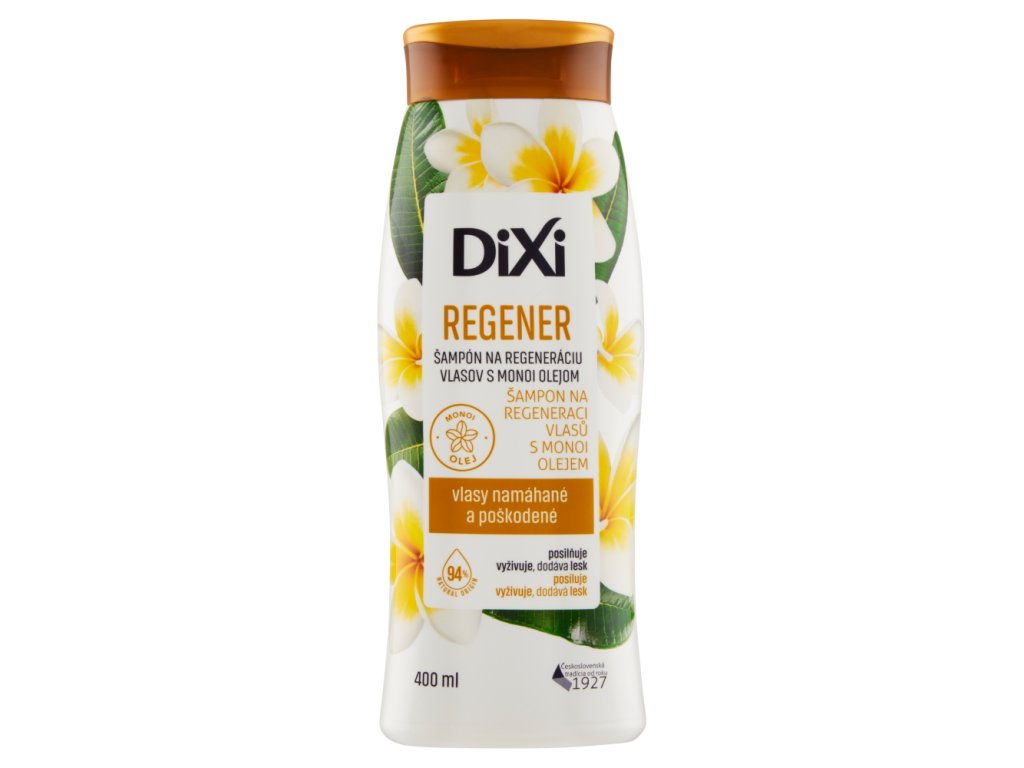 Dixi regeneračný šampón s monoi olejom, keratínom a panthenolom je určený na umývanie namáhaných a poškodených vlasov. Vlasy jemne umýva a pri pravidelnom používaní napomáha chrániť vlasy pred vonkajšími vplyvmi a udržovať ich zdravý vzhľad. Zanecháva vlasy hodvábne jemné, lesklé a pružné.