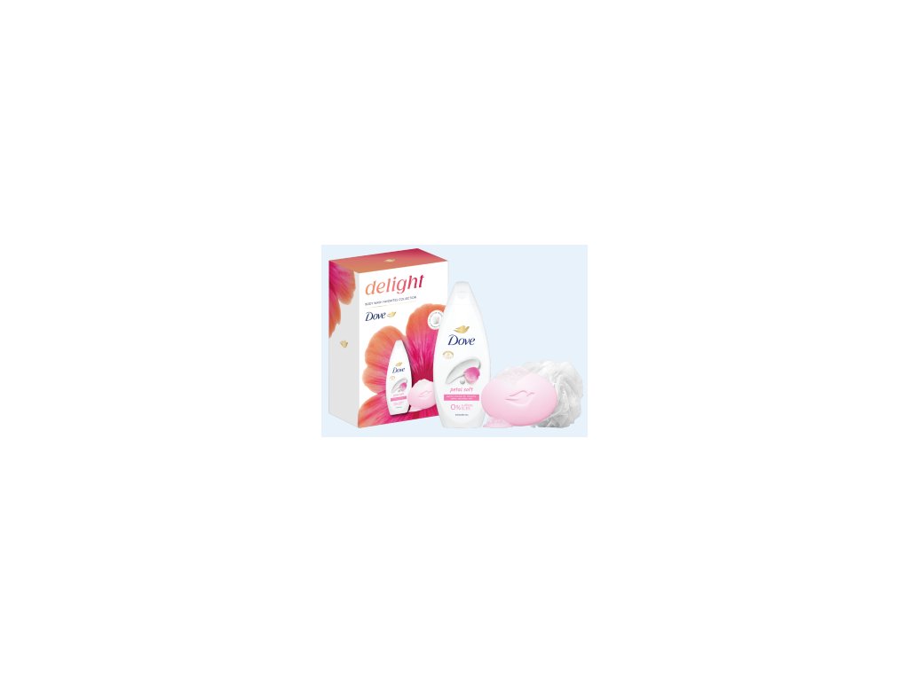 Dove darčeková sada pre ženy PETAL SOFT (sprchový gél 250ml + tuhé mydlo 90g + špongia)