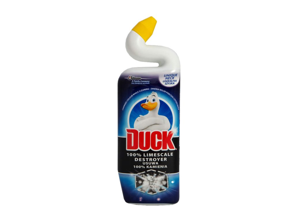 Duck 100% odstraňovač vodného kameňa odstráni pravidelným používaním vodný kameň z WC misy navždy. Veľmi silné zloženie , ktoré odstráni 100% vodného kameňa z Vašej toalety. Unikátny tvarovaný krk fľaše dosiahne pod okraj misy, kde sa vodný kameň ukladá najviac a zabíja baktérie, ktoré sa v ňom množia.