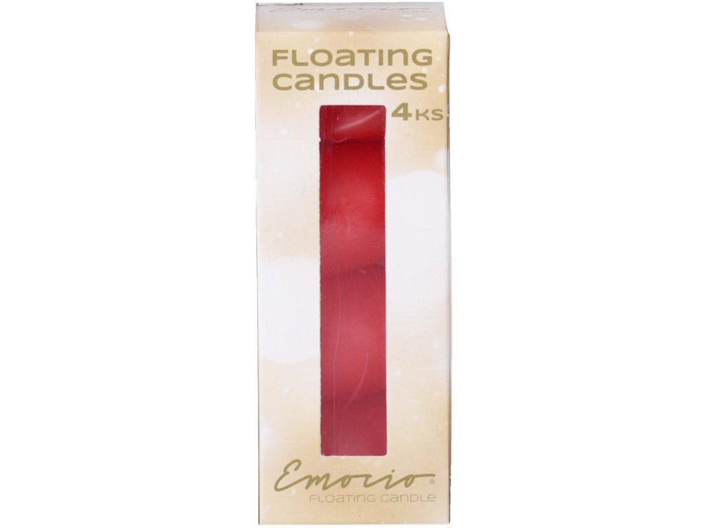 Sada 4 červených plávajúcich sviečok Emocio v krabičke. Vhodné na romantické dekorácie a slávnostné príležitosti. Rozmery každej sviečky sú 40x40 mm.Dodatočné parametre