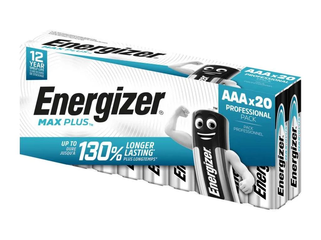 Alkalické batérie Energizer Max Plus Professional AAA predstavujú spoľahlivý zdroj energie pre každodenné aj náročnejšie elektronické zariadenia. Sú navrhnuté pre stabilný výkon pri vysokom odbere energie a pulznom zaťažení, vďaka čomu sú vhodné napríklad pre bezdrôtové myši, ovládače, hračky, meracie prístroje alebo ďalšiu modernú elektroniku.