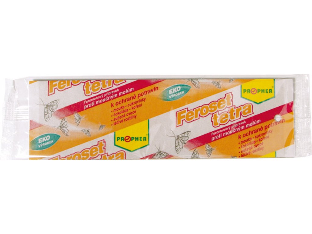 Feromónový prostriedok na signalizáciu a odchyt synantropných zavíjačov Pyralidae (tzv. múčne mole). Je účinný na zavíjače skladiskového, múčneho, paprikového a datľového. Kartónový prúžok o veľkosti 60 × 200 mm opatrený otvorom na zavesenie, jednostranne pokrytý vrstvou nevysychavého lepidla s obsahom sexuálneho feromónu. Lepová vrstva je krytá silikónovaným papierom. Každý prúžok je zabalený v polypropylénovom obale. Spôsob aplikácie: v domácnostiach, obchodoch s potravinami, sklady, mlyny, pekárne a ďalšie... proti potravinovým moliam (uskladnené produkty, múka, cukrovinky, čokoláda, kakao, korenie, sušené ovocie, huby, liečivé rastliny, čaje, semená) vymeňte ešte pred tým, než sa lepová strana úplne zapráši alebo zapráši. prípravok bezpečne. Pred použitím si vždy prečítajte označenie a informácie o prípravku. Rešpektujte varovné vety a symboly. Technické špecifikácie sa môžu zmeniť bez výslovného upozornenia. Obrázky majú iba informatívny charakter.