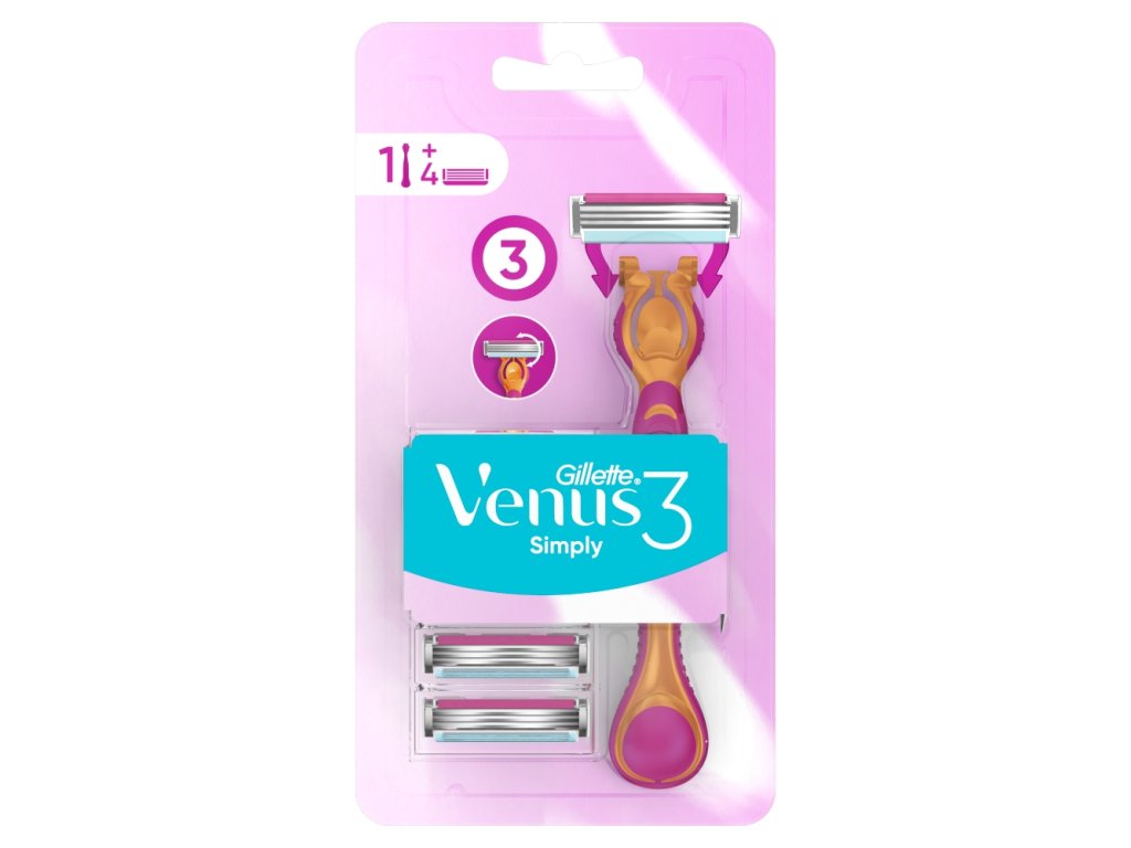Holiaci strojček Gillette Simply Venus 3 vám zaistí hladké a dokonalé oholenie bez podráždenia. Výkyvná hlavica je vybavená tromi čepieľkami pre dokonalé oholenie aj na horšie dostupných miestach.