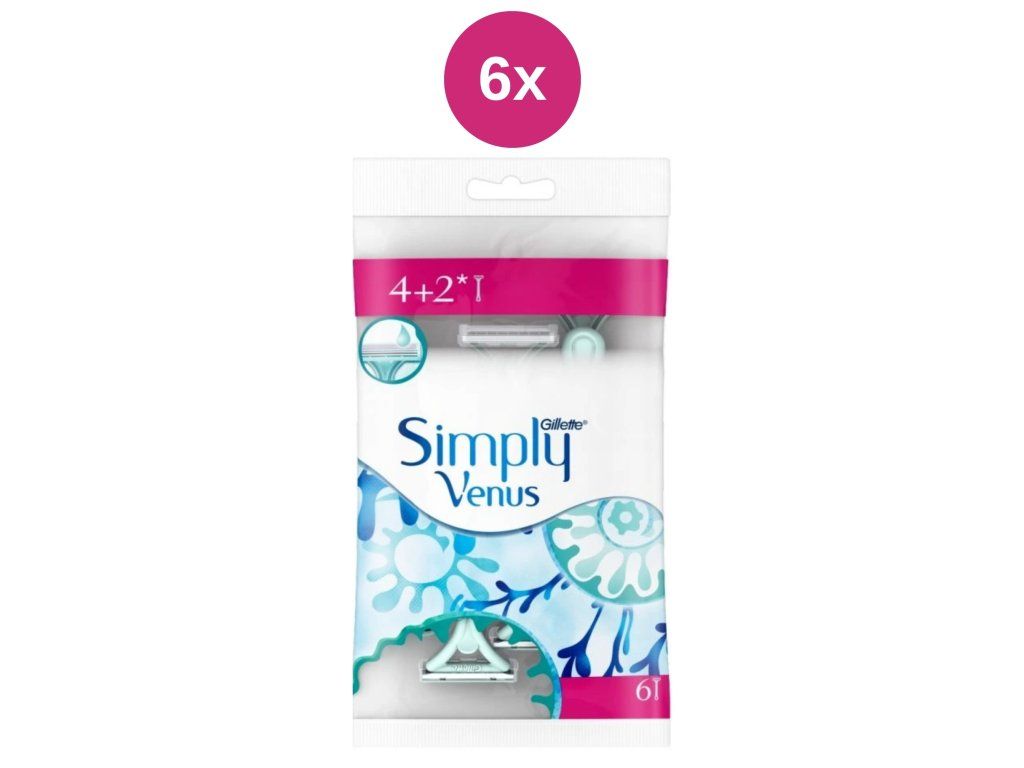 Gillette Simply Venus 2 Dámska Pohotová Holítka, 4 + 2 ks