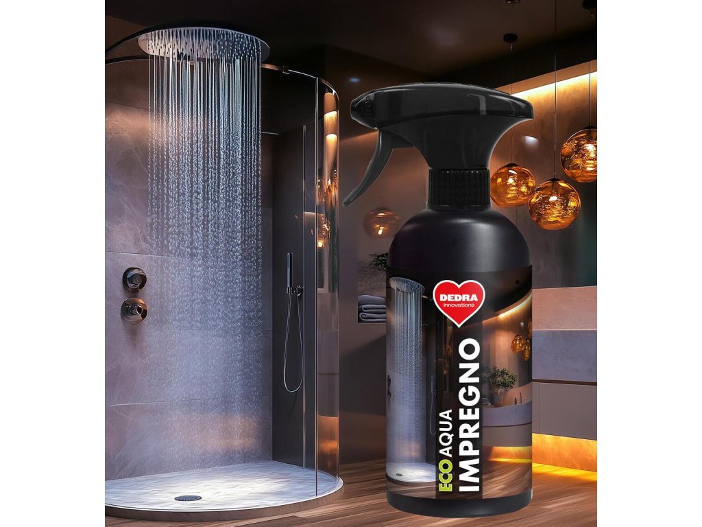 ECO AQUA IMPREGNO – impregnácia sprchovacích kútov, skiel a zrkadiel. Chráni pred vodou, usadzovaním vodného kameňa a zahmlievaním. Vytvára neviditeľný ochranný film, ktorý odpudzuje kvapky a uľahčuje čistenie povrchov. Ekologické zloženie, dlhotrvajúci efekt. 500 ml.Dodatočné parametre