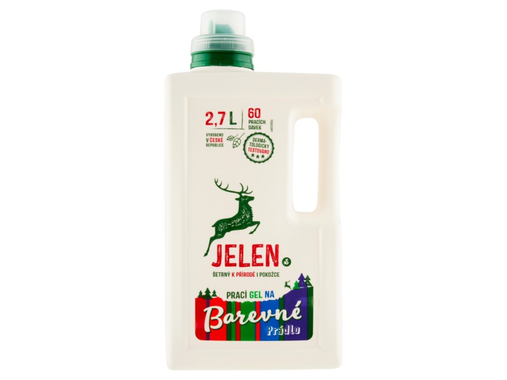 Šetrný k prírode aj pokožke. Dermatologicky testované. Perte silou jadrového mydla. 30 – 60 °C. Vyrobené v Českej republike. V mäkkej vode perie Jeleň lepšie. Na zmäkčenie vody používajte namo Pro.