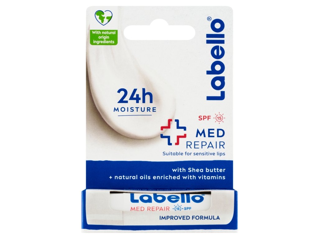 Hľadáte intenzívnu starostlivosť, ktorá vás zbaví suchých a popraskaných pier? Vyskúšajte silu vitamínu E a doprajte si okamžitú úľavu pre jemnú pokožku pier. Účinné zloženie balzamu bráni ďalšiemu vysušovaniu a pomáha hojiť drobné prasklinky. Vďaka OF 15 , ktorý chráni pred škodlivým UVA / UVB žiarením, sa o svoje pery nemusíte báť ani v lete. Siahnite po kvalitnej starostlivosti: Labello Balzam na pery Med Repair .
