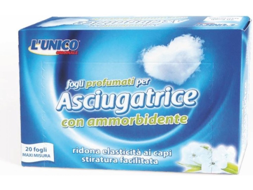 L´unico Originale obrúsky do sušičky so zmäkčovačom 20 ks - parfumované obrúsky do sušičky so zmäkčovačom. Znižujú tvorbu typických záhybov bielizne, uľahčujú žehlenie. Po sušení je bielizeň mäkká a má príjemnú vôňu. Antistatický efekt - zbaví vašu bielizeň nežiaducich nečistôt, prachu a srsti zvierat. Vložte jeden, či dva obrúsky do bubnovej sušičky spoločne s bielizňou. Spustite program sušenia. Každý obrúsok vydrží jeden sušiaci cyklus.