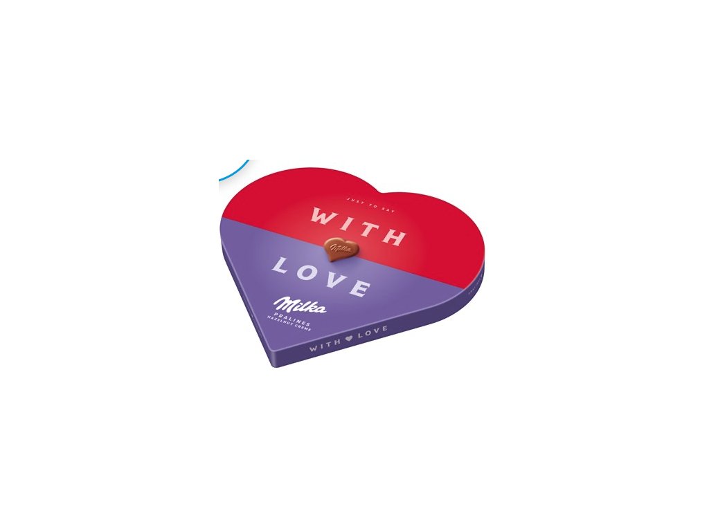 Cukríky z mliečnej čokolády z alpského mlieka s lieskovoorieškovou krémovou náplňou (40 %).