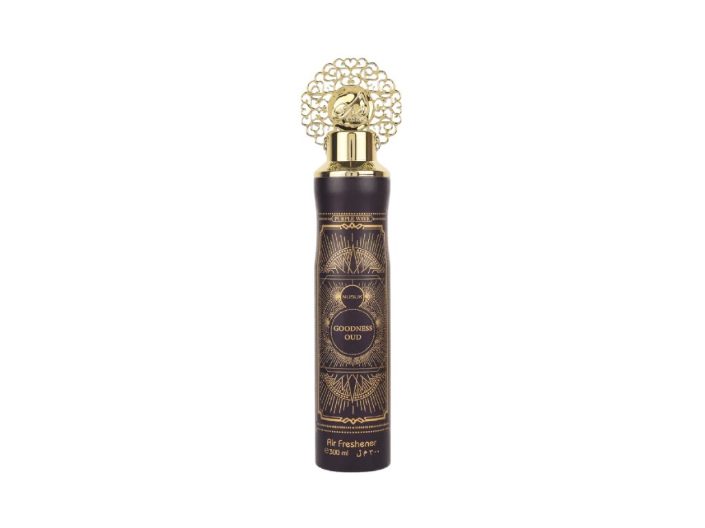 Nusuk Goodness Oud Purple je luxusný osviežovač vzduchu v spreji inšpirovaný orientálnymi vôňami. Ponúka intenzívnu a dlhotrvajúcu arómu, ktorá kombinuje hrejivé korenené tóny s drevitými a sladkými akordmi.