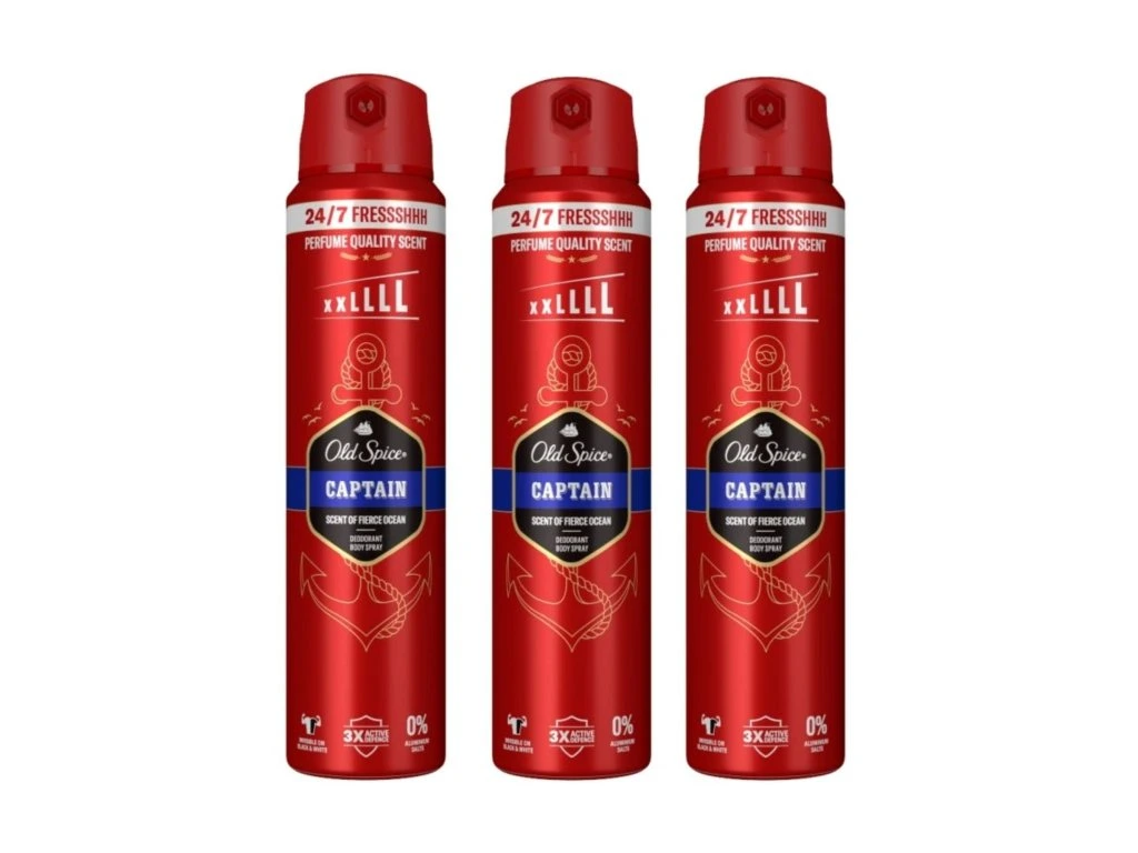 - Nasprejujte do podpazušia a na celé telo pre dlhotrvajúcu ochranu. Na splnenie vašich ambícií bez väčšej námahy vám Old Spice Captain prináša nôž na vylúpnutie celého sveta ako ustrice spolu s kultivovanou a spoločenskou vôňou, ktorá nepozná, čo je to „faux pas“. Dezodorant Old Spice pre mužov premôže aj ten najväčší zápach ohromujúcou vôňou.