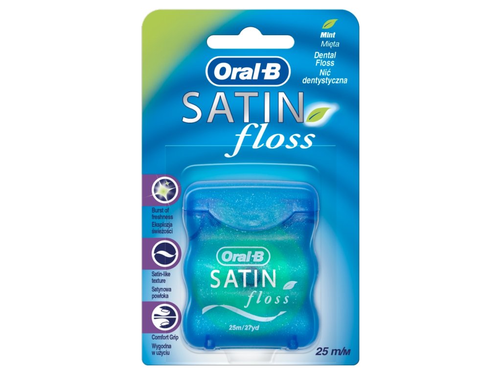 - Pocit pri používaní zubnej nite Oral-B Satin Floss je okamžite iný, pretože sa pri kontakte so slinami uvoľňuje mätová sviežosť. Budete vedieť, že naozaj funguje. Má jedinečný povrch hladký ako satén
