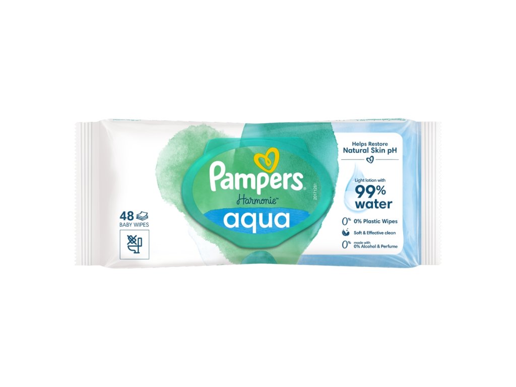 Jedinečné zloženie je dermatologicky testované a chráni pokožku lepšie ako vodou navlhčená bavlnená látka, aby jemne čistili aj tú najcitlivejšiu pokožku a chránili ju pred podráždením. Pretože sú čistiace obrúsky Pampers Harmonie Aqua navrhnuté s ohľadom na citlivú pokožku novorodencov, sú bez alkoholu, parfumácie a farbív.