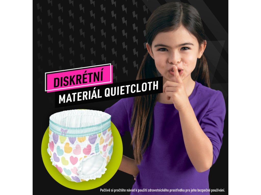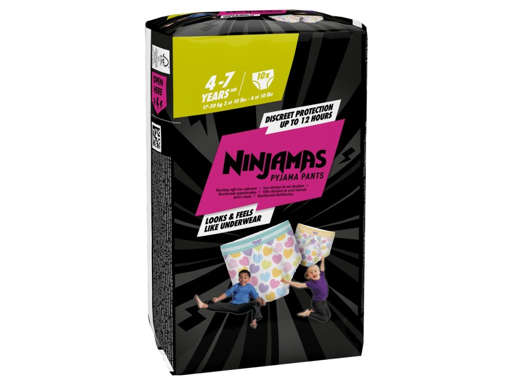 Ninjamas JP S7 sú pyžamové nočné nohavičky. Plienkové nohavičky absorbujú vďaka technológii Instant Absorption okamžite vlhkosť pre doteraz nevidenú účinnú ochranu. Vďaka pohodlnému pásu FormFit sa prispôsobujú telu dieťaťa, aby boli diskrétne a pohodlne padli ako spodnú bielizeň. Deti sa tak môžu každý deň prebúdzať so skvelým pocitom. Bezpečnosť dieťaťa je prioritou.