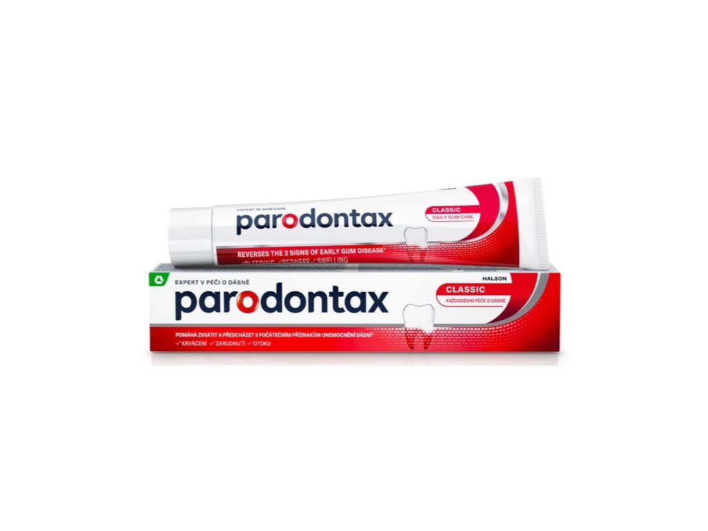 Zubná pasta Parodontax Classic je špeciálne navrhnutá na každodennú starostlivosť o ďasná. Vďaka svojmu zloženiu pomáha fyzicky odstraňovať zubný plak pozdĺž línie ďasien – hlavnú príčinu ich podráždenia a krvácania – a prispieva k ich zdravšiemu vzhľadu. Pasta je vhodná aj pre osoby, ktoré preferujú starostlivosť bez fluoridu.