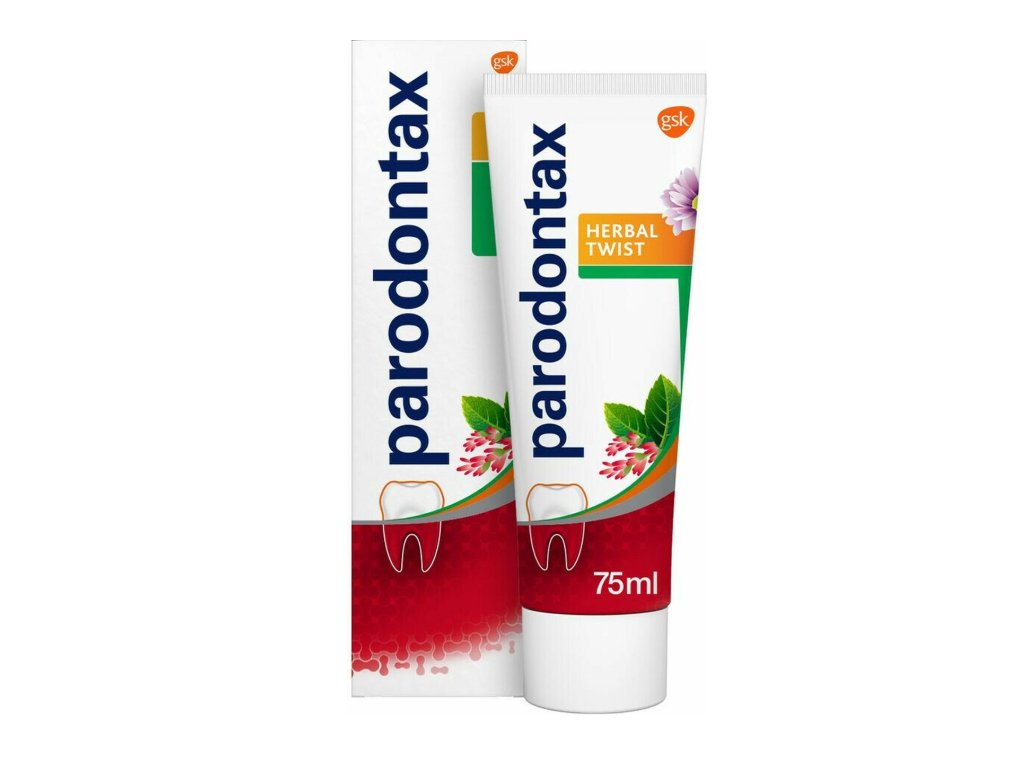 Parodontax Herbal Twist Ginger & Mint je zubná pasta navrhnutá pre každodennú starostlivosť o zdravie ďasien a účinné odstránenie zubného povlaku. Vďaka špeciálnemu zloženiu so sódou a fluoridom pomáha chrániť zuby pred kazom, podporuje pevnejšie ďasná a prispieva k sviežemu dychu. Jedinečná kombinácia zázvoru a mäty dodáva paste jemne bylinnú a sviežu chuť, ktorá spríjemní každé čistenie zubov.