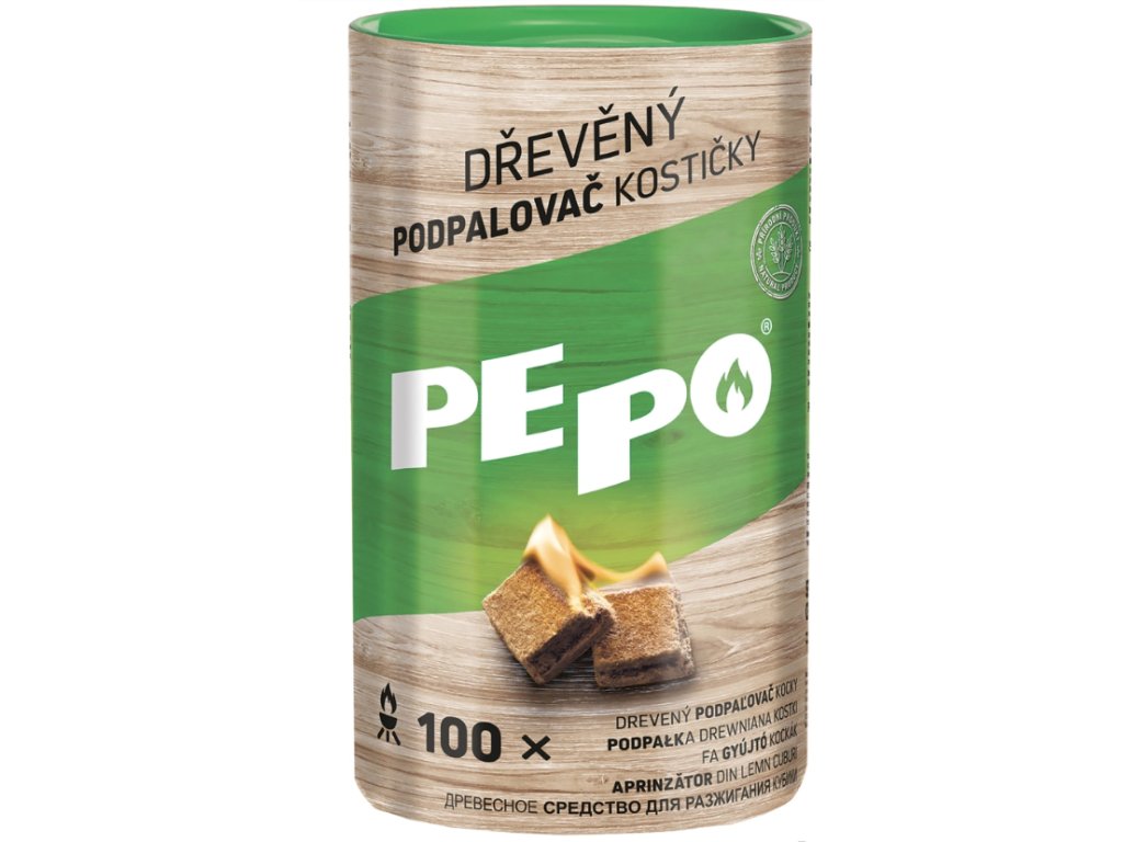 PE-PO drevený podpaľovač v tvare kociek. Prírodné zloženie , obsahuje iba lisované drevené piliny a parafín. Jednoduché, rýchle a bezpečné použitie. Horí 8-10 minút bez zápachu. Vhodný na použitie v interiéri aj vďaka príjemnej vôni kakaa. Tento podpaľovač pepo je zaujímavá alternatíva ku klasickým pevným alebo tekutým podpaľovačom.