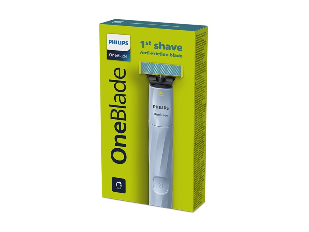 Philips OneBlade First Shave na tvár pre prvé oholenie. Neľútostný k fúzom, šetrný k pokožke. Obojstranný brit s dvojitou ochrannou pred porezaním. Breť Anti-friction s vrstvou mikroperličiek na zníženie trenia pri holení. Vodotesný, na mokré i suché oholenie. Výdrž batérie 30 min / 8 hod nabíjania. Nabíjanie USB-A (adaptér nie je súčasťou balenia).