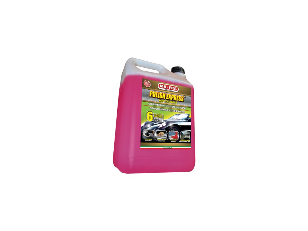 MA-FRA - Polish Express 4,5 l - Profesionálny šampón s bázou nanotechnológií. Čistí a uzatvára póry v laku karosérie. Dodá vysoký lesk s dlhou trvanlivosťou.Dodatočné parametre