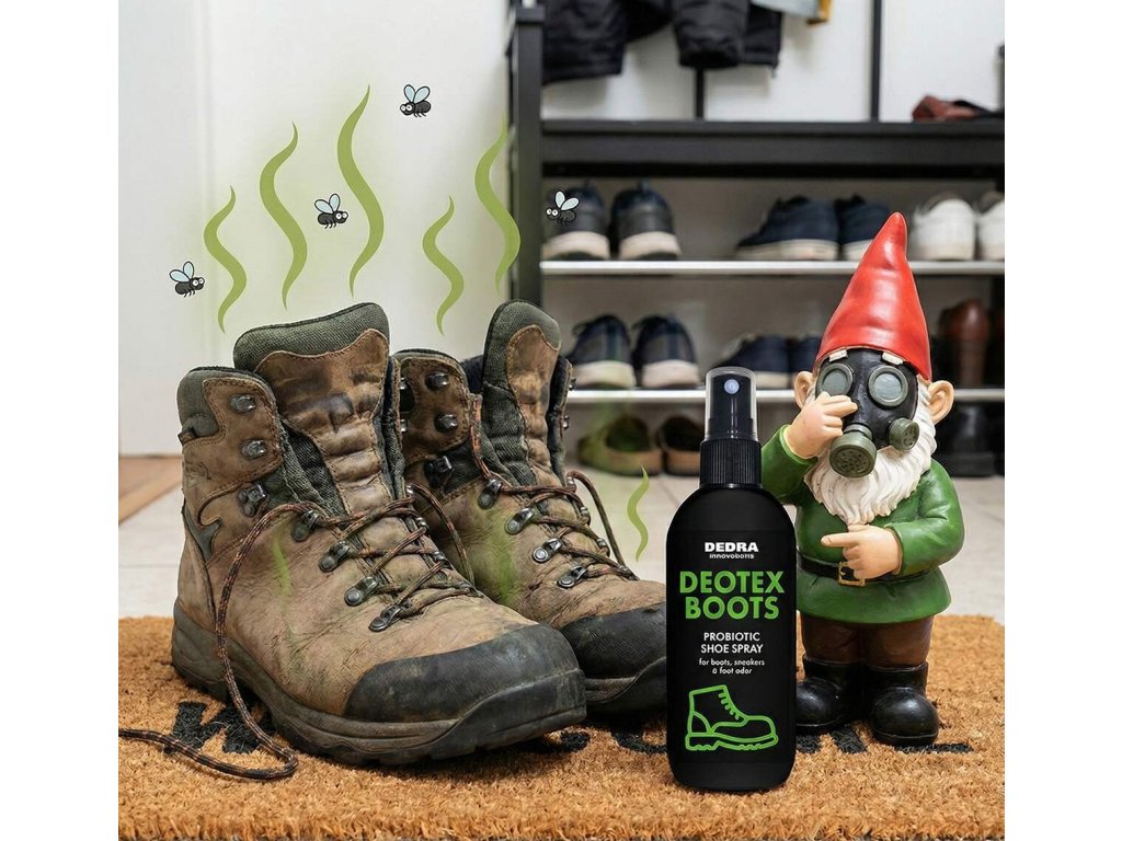 DEOTEX® BOOTS 100 ml - probiotický sprej na obuv proti zápachu. Okamžite neutralizuje pachy vo vnútri topánok, poskytuje dlhodobú ochranu proti ich návratu a zaisťuje sviežosť až na niekoľko dní. Vhodný pre všetky typy obuvi - športové, pracovné i každodenné.Dodatočné parametre