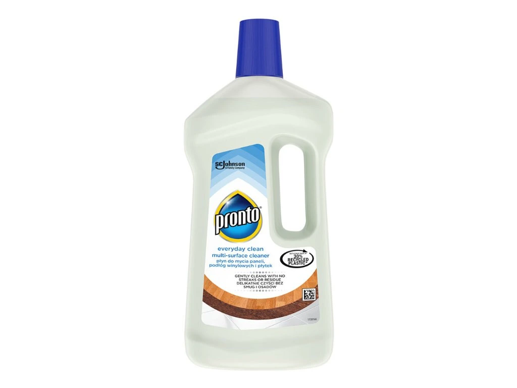 Pronto Everyday Clean na laminát a vinyl 750 ml je čistiaci prostriedok určený na pravidelnú údržbu tvrdých podláh v domácnosti. Jemné zloženie účinne odstraňuje prach, bežné nečistoty aj mastnotu a zároveň pomáha udržať podlahy svieže, čisté a bez šmúh. Je vhodný predovšetkým na laminátové a vinylové podlahy, ale je možné ho použiť aj na dlažbu.