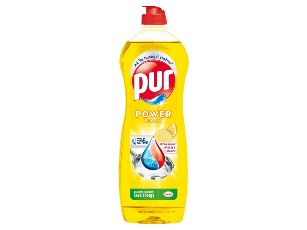 Gél na umývanie riadu Pur Power Lemon so zložením Cold-active odstraňuje mastnotu, škrob aj zaschnuté zvyšky jedla - pre žiarivo čistý riad pri každom umývaní. Vďaka zloženiu Cold-active odstraňuje umývací prostriedok zvyšky jedla aj pri umývaní špinavého riadu v studenejšej vode. Oplachujte ho studenou vodou a ušetrite energiu