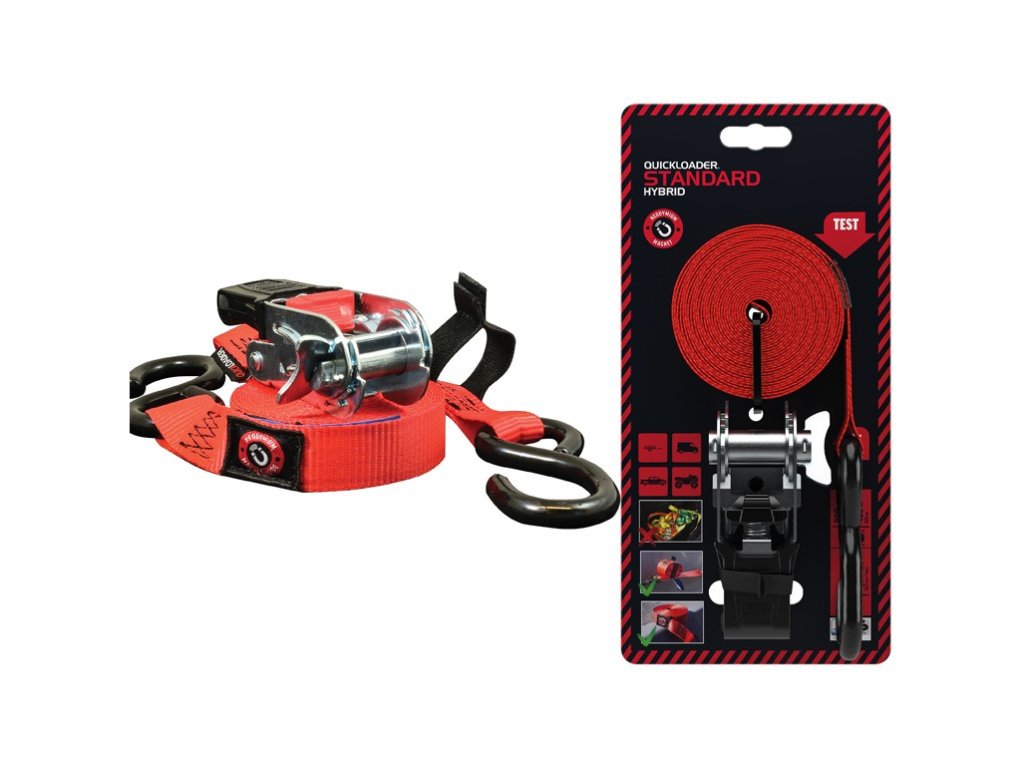 QUICKLOADER® Standard HYBRID s nosnosťou 800 kg a dĺžkou 4,5 m (0,3 + 4,2 m) prináša inteligentné riešenie pre každodenné zaistenie nákladu – a to vďaka integrovaným neodymovým magnetom, ktoré zjednodušujú prácu a zvyšujú celkový komfort pri manipulácii. Pri upevnení zostáva hák vďaka magnetickému prichyteniu stabilne na svojom mieste, čo výrazne uľahčuje prácu aj bez pomoci ďalšej osoby. Rovnaký princíp zaisťuje aj prehľadné a kompaktné skladovanie – pás zostáva elegantne uchytený, nezamotáva sa a šetrí miesto. Prítlačný mechanizmus z kovu sa ovláda hladko a umožňuje pevné dotiahnutie bez námahy. „S“ háky s ochranným gumovým poťahom chránia prevážaný materiál a kotviace body pred poškriabaním. Šírka 25 mm a pevná polyesterová tkanina zaisťujú odolnosť a dlhú životnosť – či už v domácnosti, garáži, dielni alebo pri prevoze výbavy v aute. Vlastnosti: Nosnosť 800 kg, dĺžka 4,5 m (0,3 + 4,2 m), šírka 25 mm Magnetické prvky pre ľahšiu manipuláciu i skladovanie Ochranné háky s gumovým poťahom Spoľahlivý a ľahko ovládateľný mechanizmus 1 ks v balení - pripravený na okamžité použitie QUICKLOA hľadajú jednoduché, ale technicky premyslené riešenie na zaistenie ľahšieho až stredne ťažkého nákladu.Dodatočné parametre
