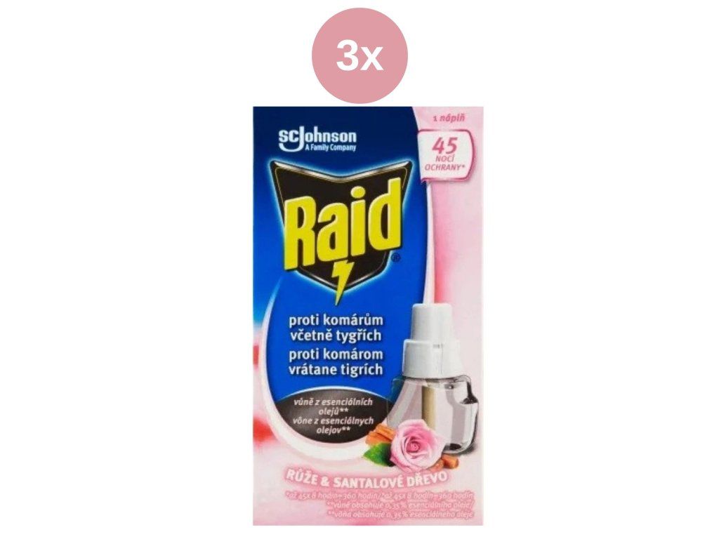 Raid odparovač tekutý proti komárom náhradná náplň do elektrického strojčeka ruže a santalové drevo 3x45 nocí 27 ml