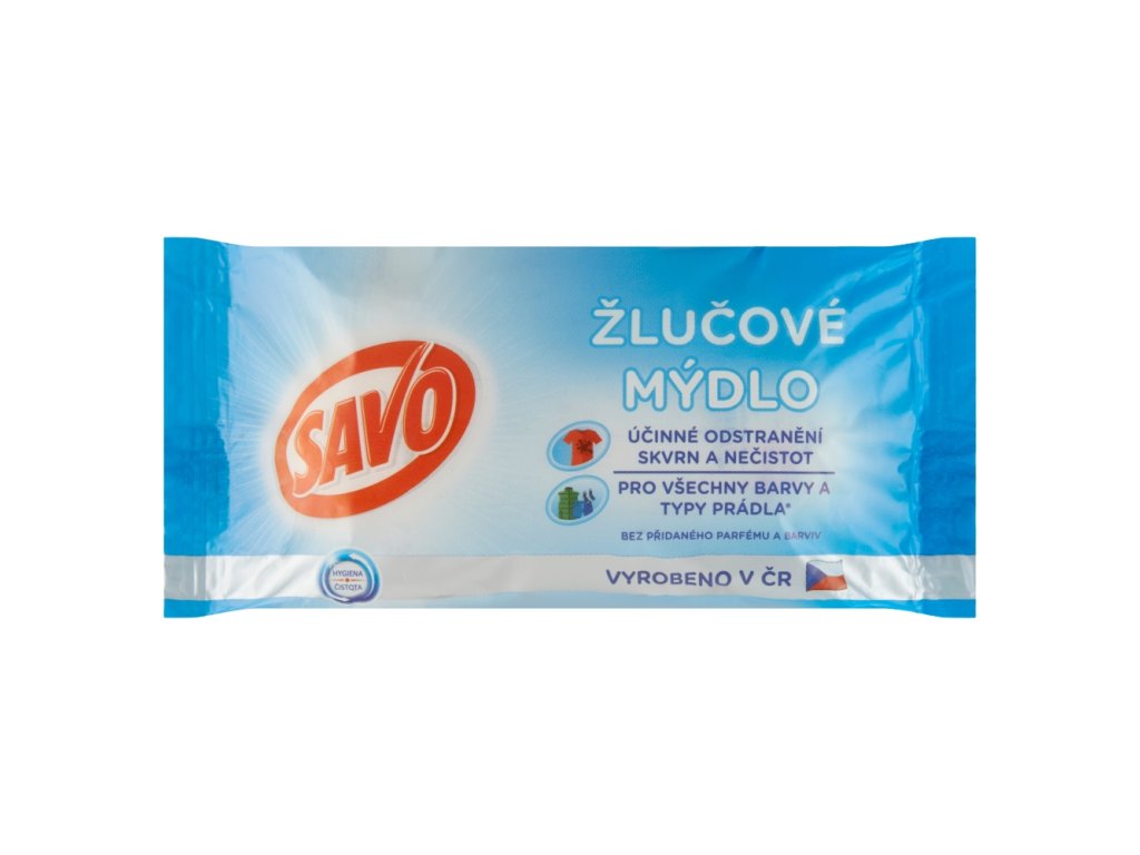Savo Žlčové mydlo odstraňuje vďaka svojmu účinnému zloženiu rôzne typy odolných škvŕn zo všetkých textílií, čalúnenie a kobercov. Odstraňuje škvrny napríklad od jedla, oleja, make-upu, rúžu, krvi, nečistoty z golierov a manžiet, mazív a mnoho ďalších.