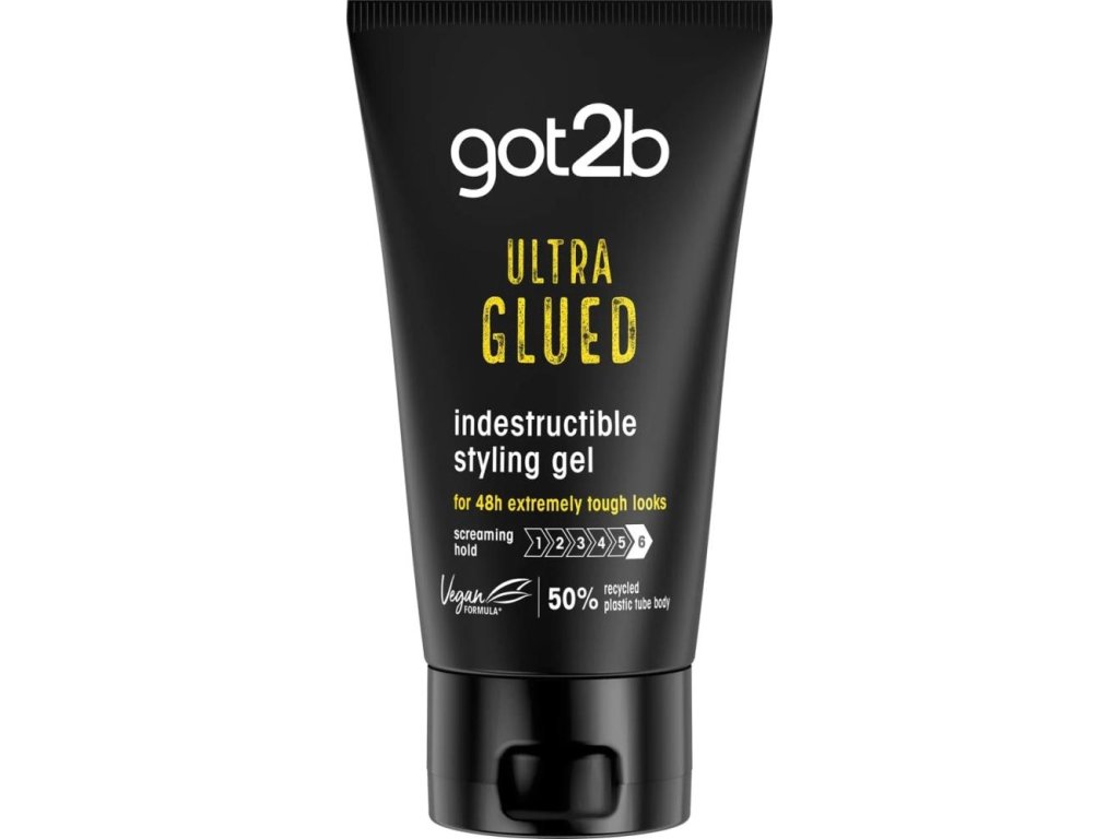 Stylingový gél Schwarzkopf Got2b Ultra Glued je ideálnou voľbou pre tých, ktorí chcú extrémne silnú fixáciu bez kompromisov. Jeho špeciálne zloženie Alpha XTR zaručuje, že váš účes vydrží až 48 hodín , a pritom gél nelepí, nezanecháva zvyšky a dá vám dostatok času na precízny styling.