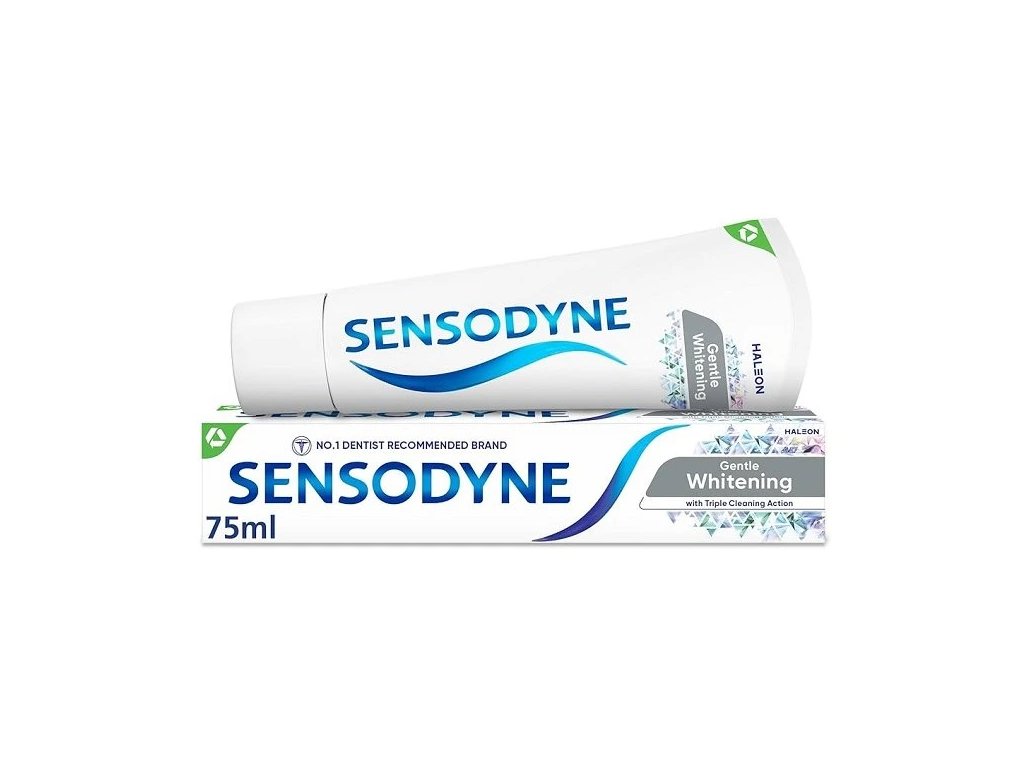 Zubná pasta Sensodyne Gentle Whitening je určená na každodennú starostlivosť o citlivé zuby. Špeciálne zloženie pomáha zmierňovať citlivosť, zároveň šetrne odstraňuje povrchové škvrny a prispieva k prirodzene belšiemu úsmevu. Vďaka obsahu fluoridu podporuje ochranu zubnej skloviny a pomáha predchádzať vzniku zubného kazu.