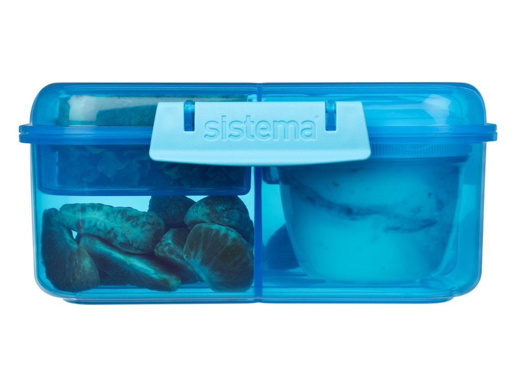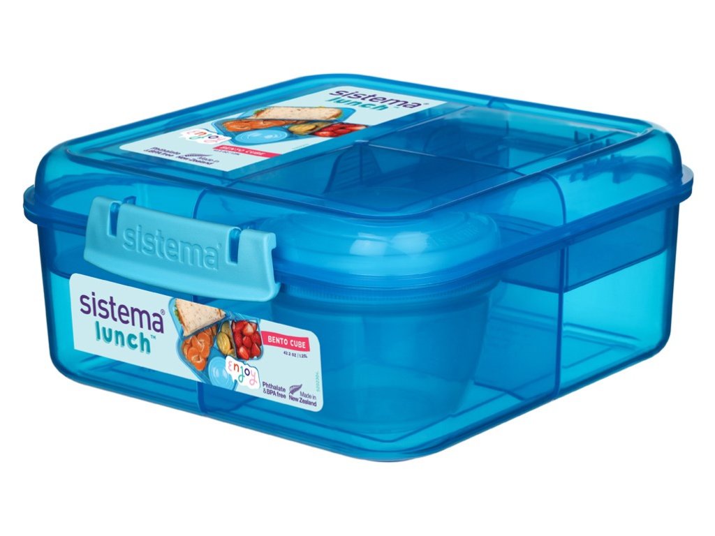Sistema Delený desiatový box Lunch Bento Cube s nádobou na jogurt a 2 tácky 1,25 l, modrá
