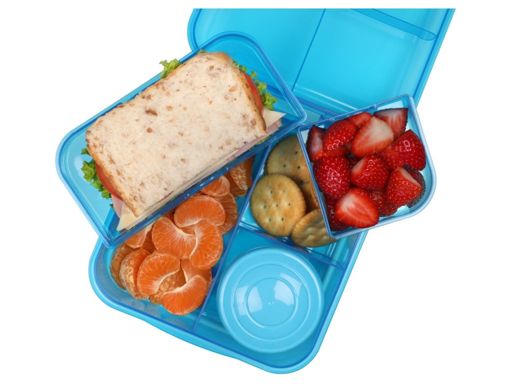 Vďaka inovatívnemu dizajnu s tromi komorami a odnímateľnými táckami, táto krabička umožňuje udržať jedlo oddelené a čerstvé až do doby konzumácie. Súčasťou je tiež 150ml kelímok na jogurt s tesniacim skrutkovacím viečkom, ideálny pre jogurt, dresingy alebo omáčky. Výhody: • 150ml kelímok na jogurt • Tri komory • Vyberateľné častiDodatočné parametre