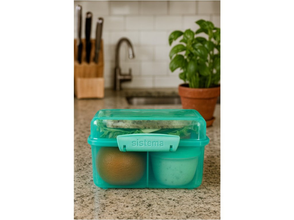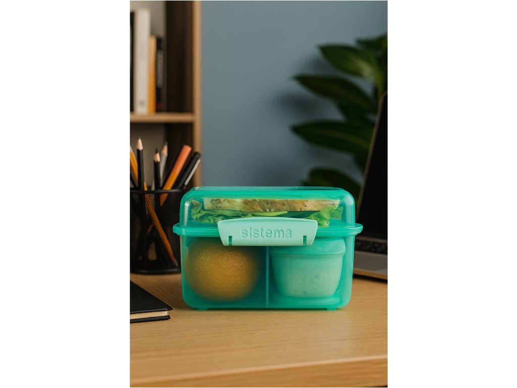Sistema Delený desiatový box Lunch Cube Max s nádobou na jogurt s dvojitým viečkom 2 l, mätová